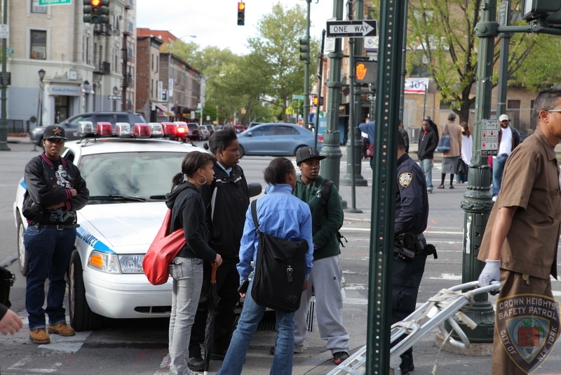 The woman called Shmira and members responded within a minute. The woman pointed out the group from half a block away and Shmira member followed for a short distance. An NYPD patrol car was flagged down on the corner of Kingston Avenue and Eastern Parkway and the officers stopped the group as they approached the intersection. The victim was brought over to identify the group, however, since she had gotten her money back she did not press charges and the group was let off with a warning.