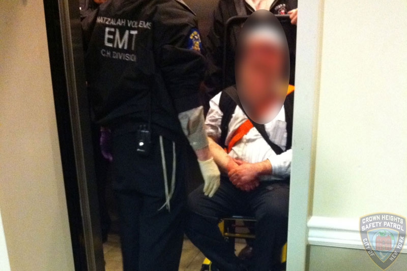 The Shmira dispatcher immediately called 911, Hatzolah and dispatched Shmira members to the scene. Shmira members immediately began canvassing the area in search of the perpetrator and the stolen car as well as  assisting the police in gathering witnesses and obtaining surveillance video.   Hotzolah arrived and  treated  the victim, who is in his sixties, for multiple lacerations and transported him to the hospital.